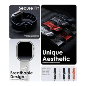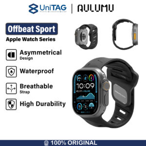 Strap Apple Watch Ultra 2 / 1 (49mm) 10 / 9 / 8 / 7 (45mm) / SE (2022 / 2020) / 6 / 5 / 4 (44mm) / 3 / 2 / 1 (42mm) Aulumu Offbeat Sport Rubber Band berbahan Polyester yang fleksibel dan sirkulasi udara terbaik dengan desain asimestris bikin jadi pusat perhatian,…