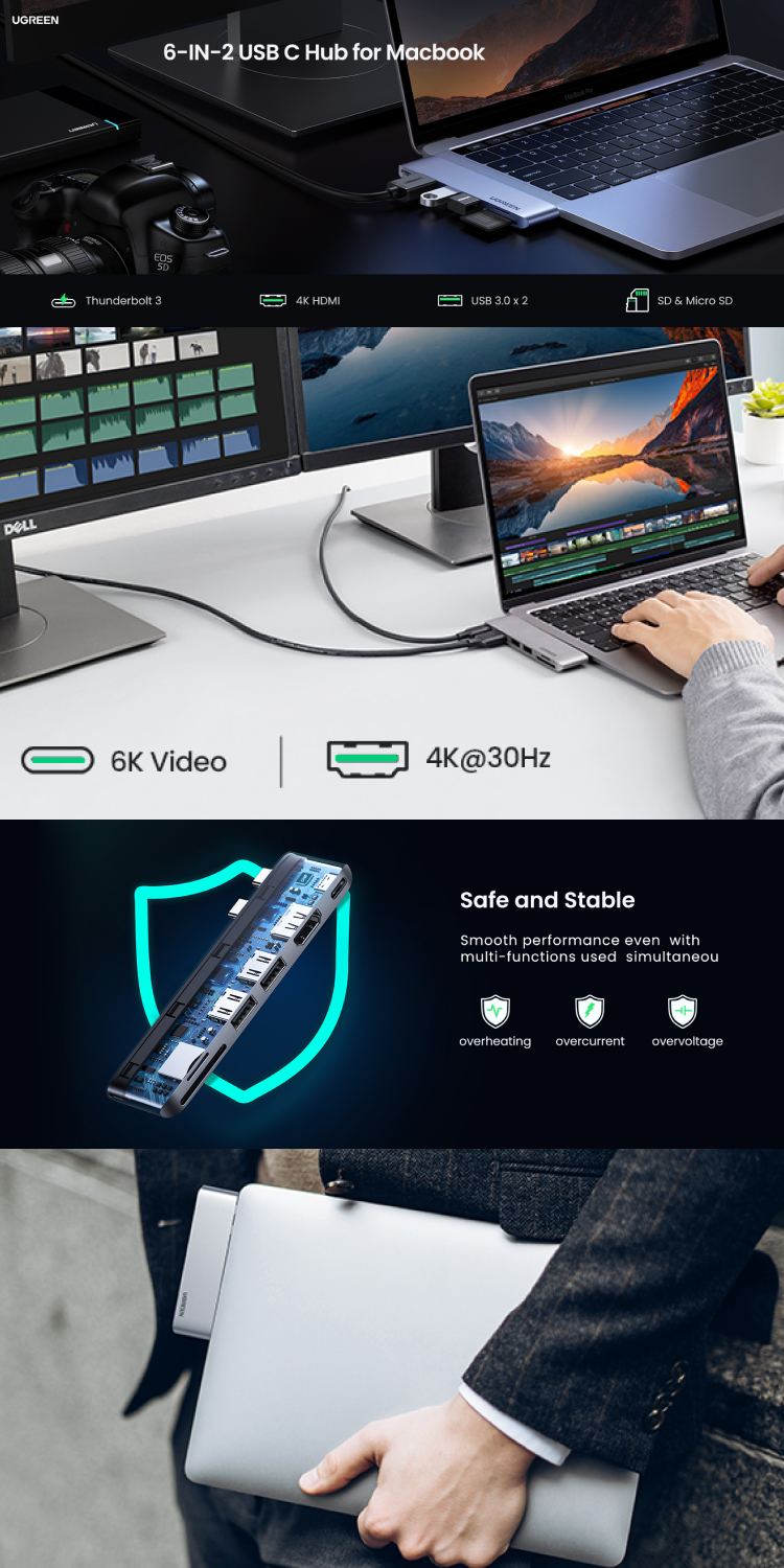 UGREEN Adapter 6in2 Hub Dual USB C (CM380)