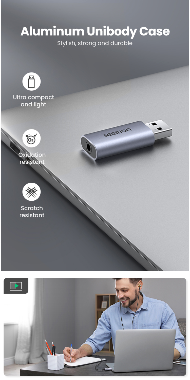 Adapter USB to Audio 3.5mm TRRS UGREEN External Stereo Sound Card Mic