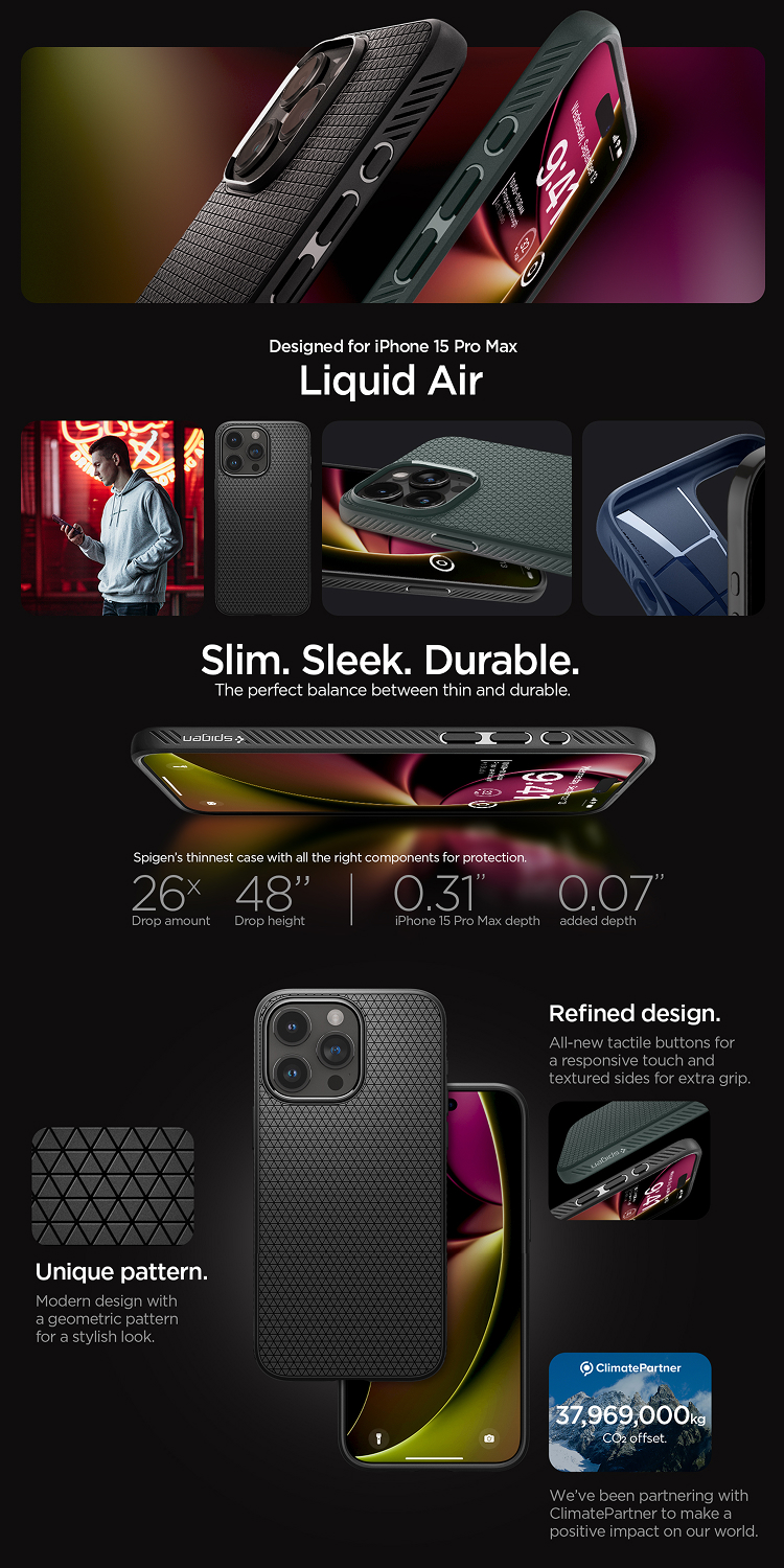 Bundling Spigen Case iPhone 15 Pro Max Liquid Air Matte Soft Casing + Tempered Glas tR EZ Clear + HADIAH GRATIS
