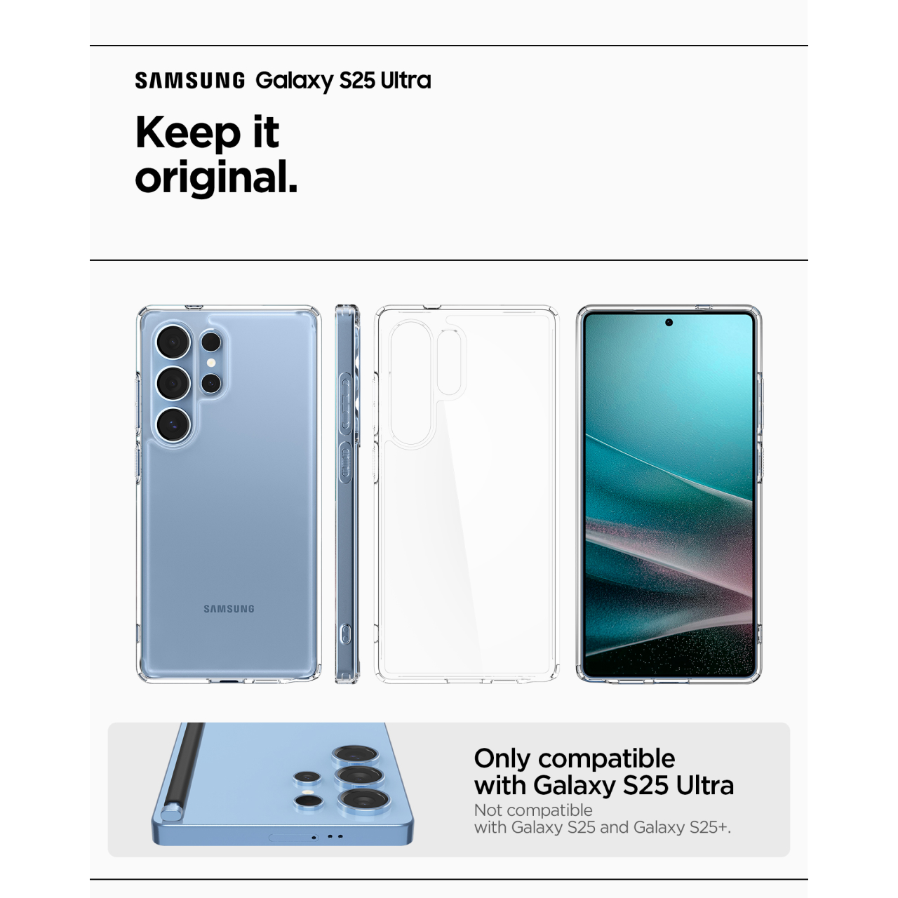 Paket Bundling Spigen Crystal Hybrid dan Tempered Glass Glas tR Ez.Fit didesain untuk kamu penggemar setia Spigen, teknologi anti shock khas spigen serta bentuk yang slim bikin s25 Ultra mu tetap show off, creativity always on!