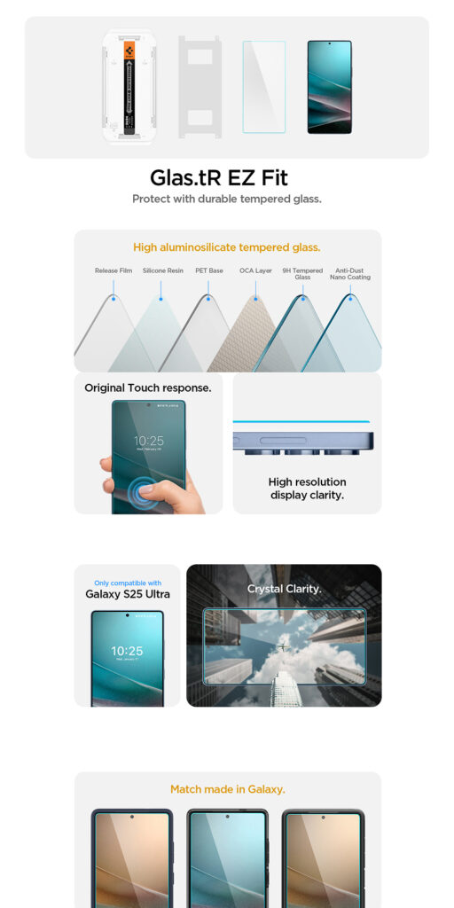 1x Spigen Glas tR Ez Fit Full Cover / EliteShield Ez Fit Tempered Glass for Samsung Galaxy S25 Series
