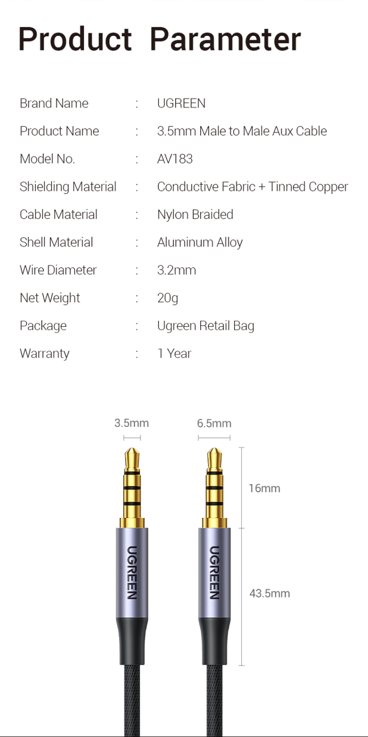 1x Cable Aux Audio Male to Male UGREEN AV183
