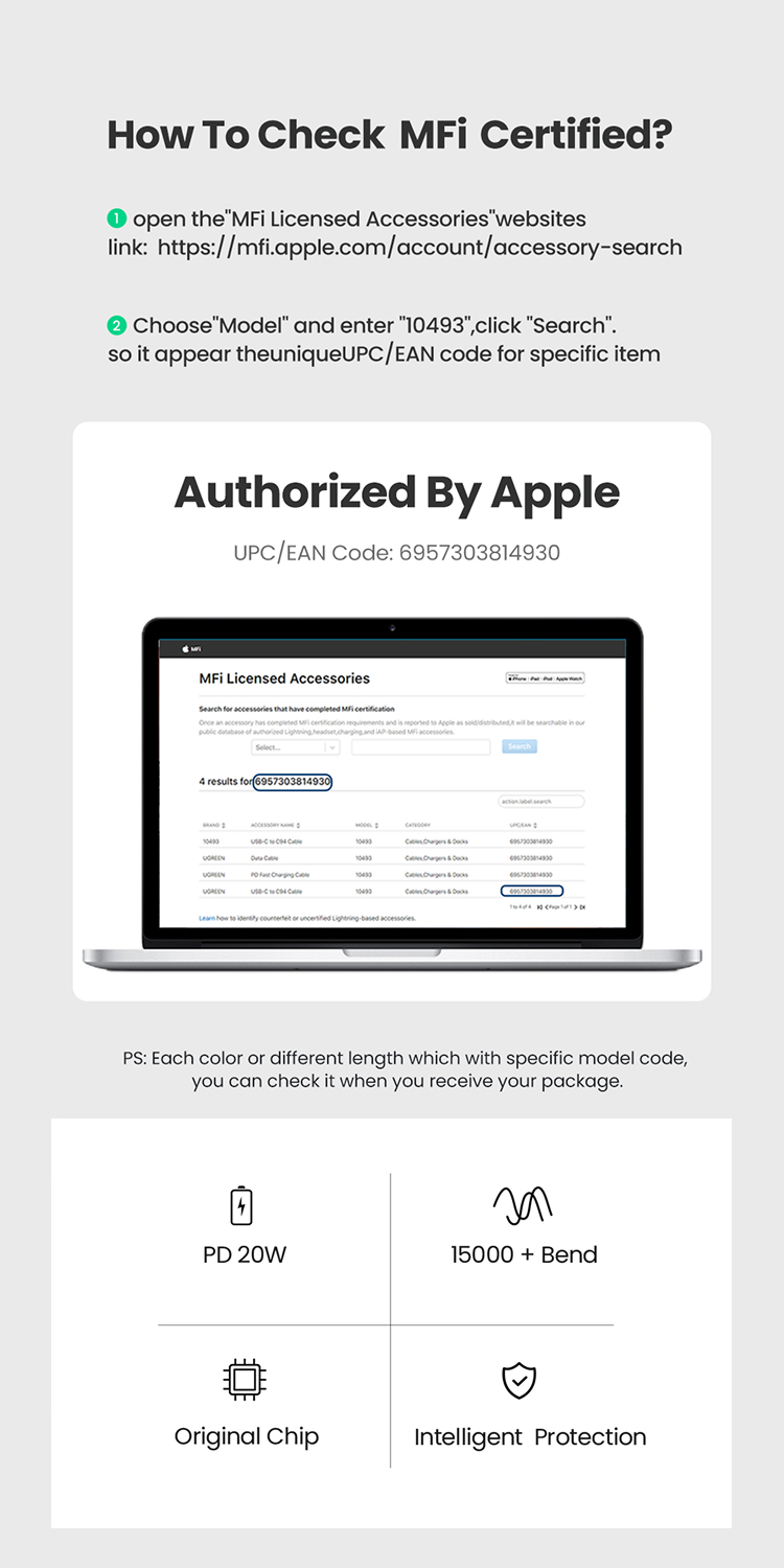 1x UGREEN USB-C to Lightning Cable 10493