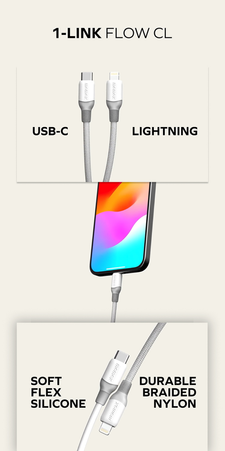 1x Cable Data USB C to Lightning Momax 1-Link Flow 30W DL53D