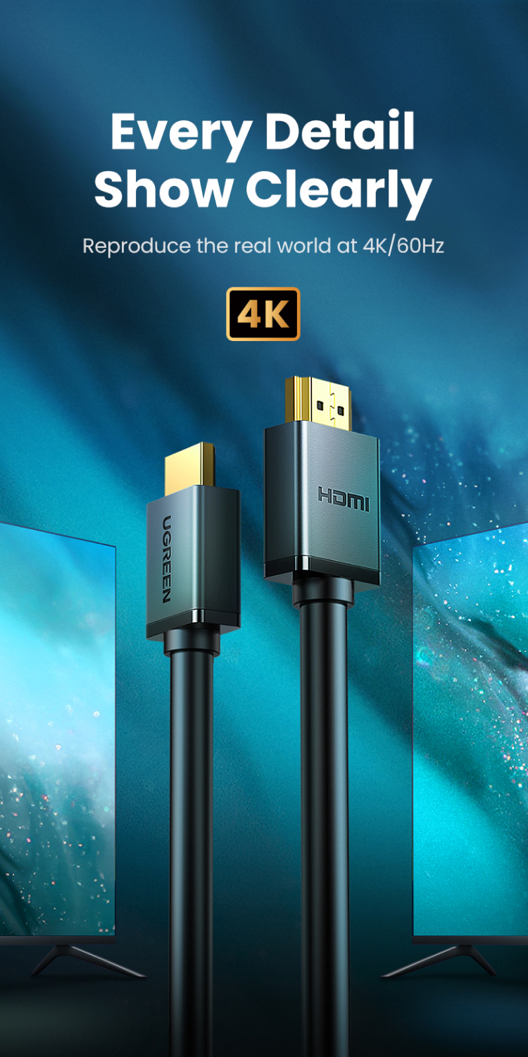 Kabel HDMi to HDMi Ugreen HD104 4k 60Hz Cable Merupakan kabel dari Ugreen yang sudah support 3D technology input / output untuk video 3D, Gaming 3D dan 3D Home Theater.