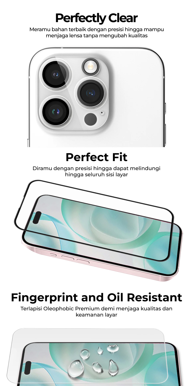 Memiliki lapisan Oleophobic yang melindungi kamera dari goresan, air, minyak dan debu agar tidak mudah menempel