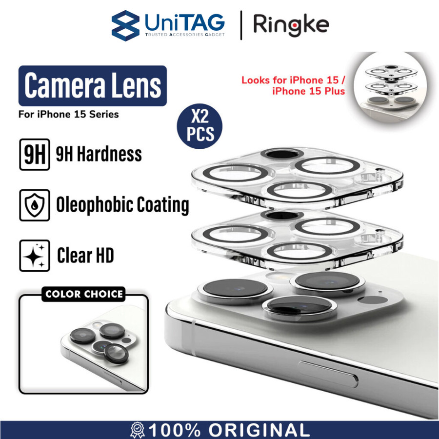 Camera Glass Protector iPhone 15 Pro Max Plus Ringke Clear Lens Cover merupakan pelindung layar kamera dari bahan tempered glass tahan lama yang akan melindungi kamera iPhone Anda dari goresan atau bahkan dari retakan.
