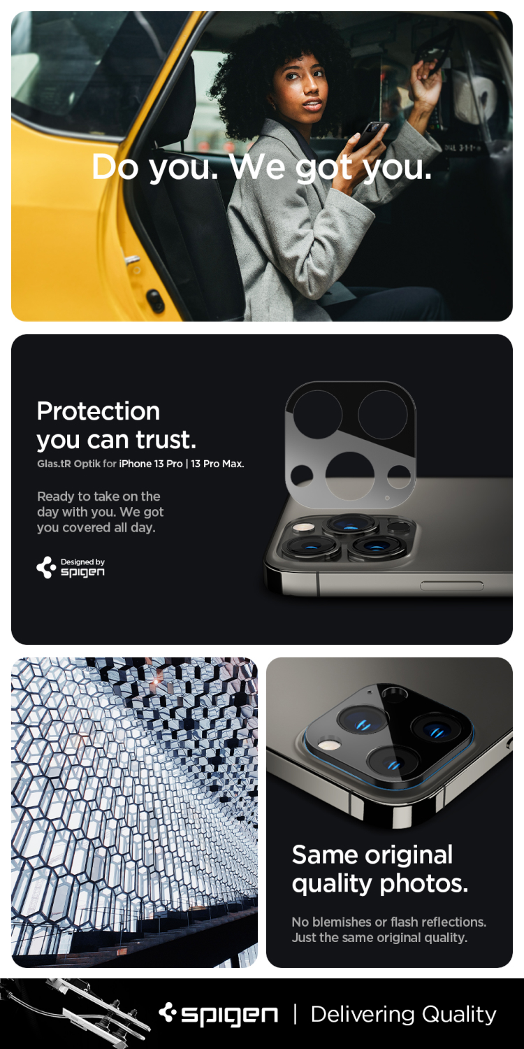 Camera Lens Protector iPhone 13 Series Spigen Glas.tR Optic akan melindungi kameramu tanpa mengurangi kualitas foto yang dihasilkan.