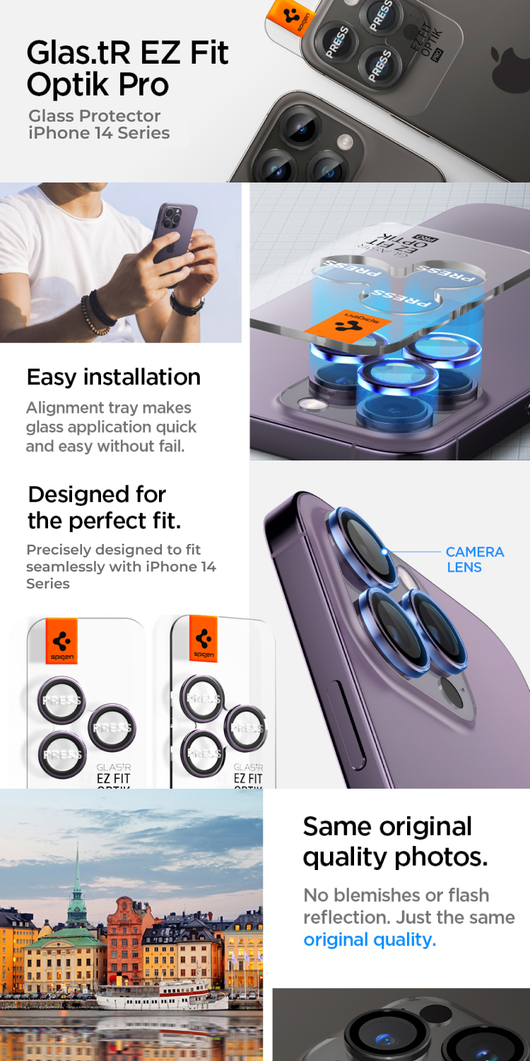 Camera Lens Protector iPhone 14 Series Spigen Glas.tR Optik Pro dengan ketebalan kaca 9H yang telah terlapisi oleophobic yang anti air, debu, dan minyak bikin lensa kamera tetep aman dan kualitas gambar maksimal !