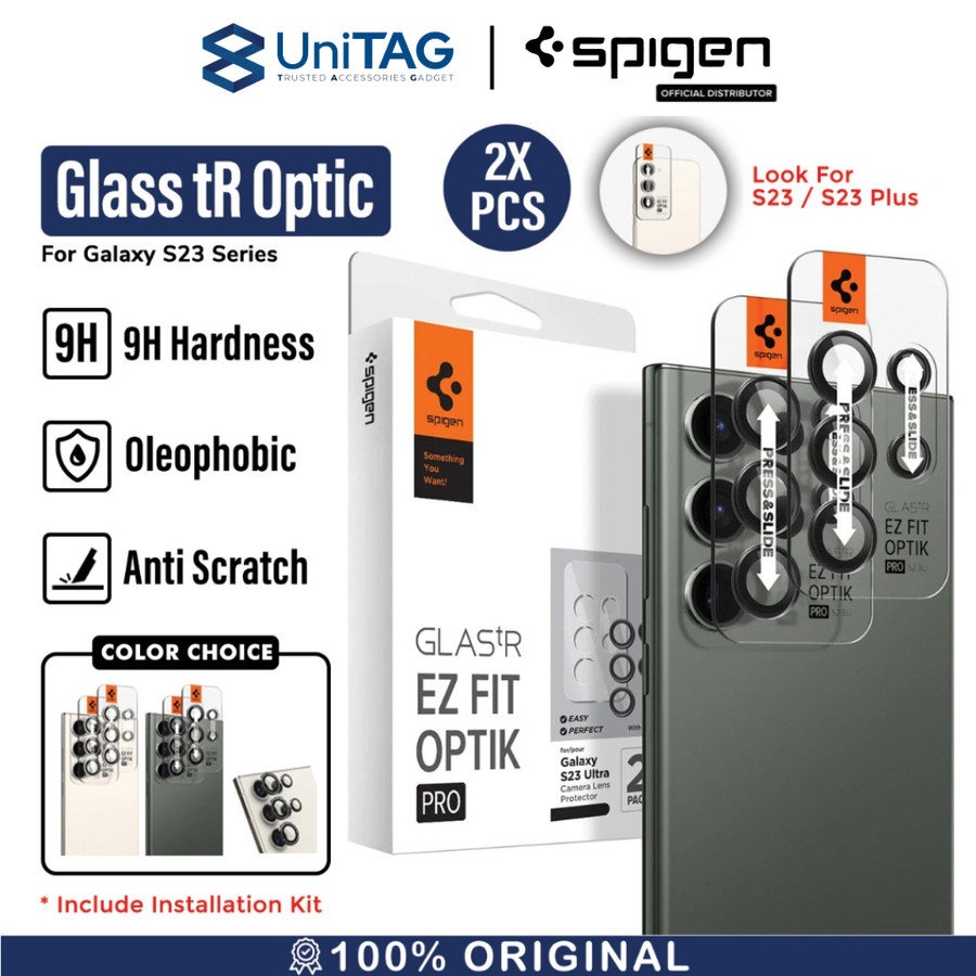 Camera Lens Protector Samsung Galaxy S23 Series Spigen Glas.tR Optik terbuat dari kaca premium dengan tingkat kekerasan kaca 9H Hardness sehingga tidak mempengaruhi hasil foto.