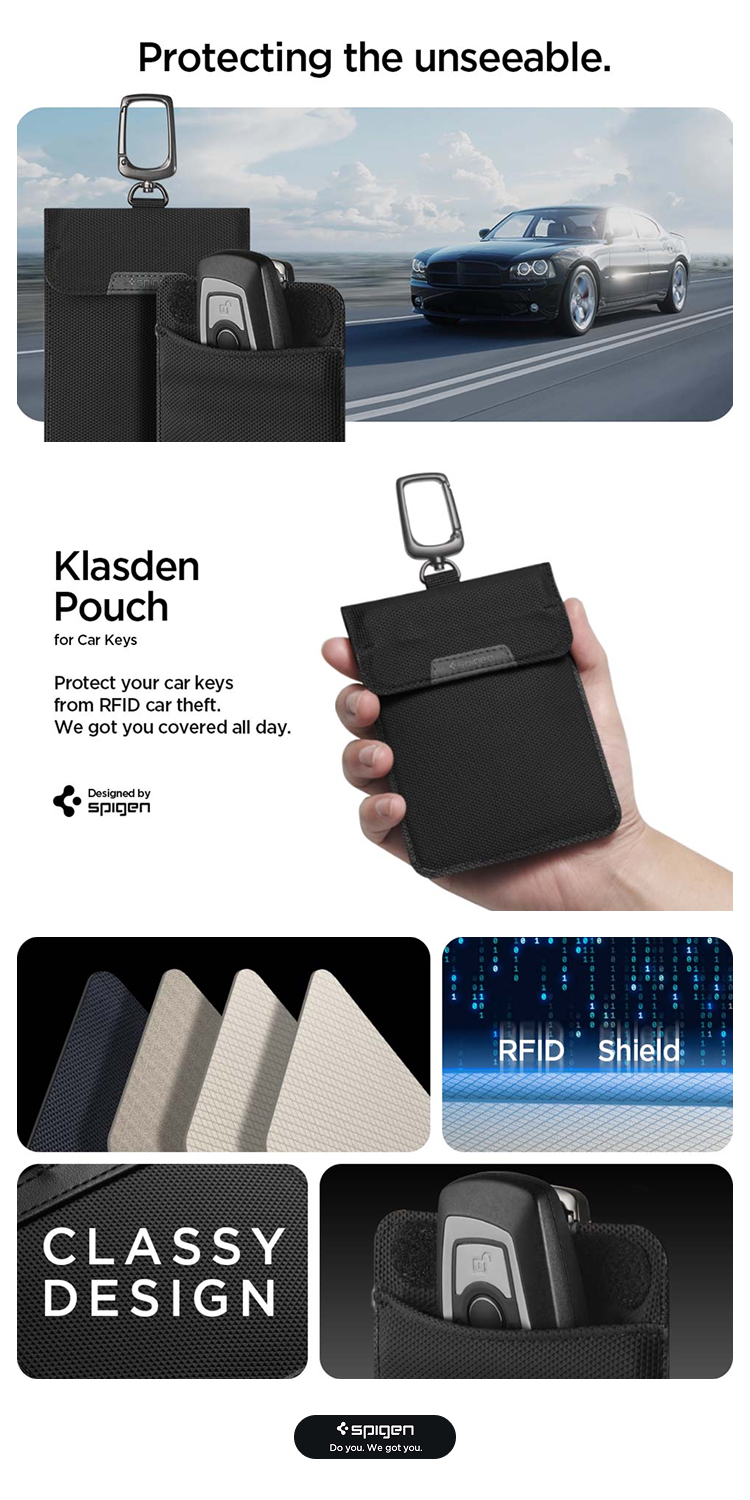 Spigen RFID Signal Blocking Keyless Pouch Pouch ini dapat memblokir transmisi gelombang radio antara kunci dan mobil untuk menjaganya dari pencurian. Spigen RFID Signal Blocking Keyless dilengkapi dengan metal pada bagian dalam cover untuk memudahkan saat menutup serta memberikan RFID Protection.
