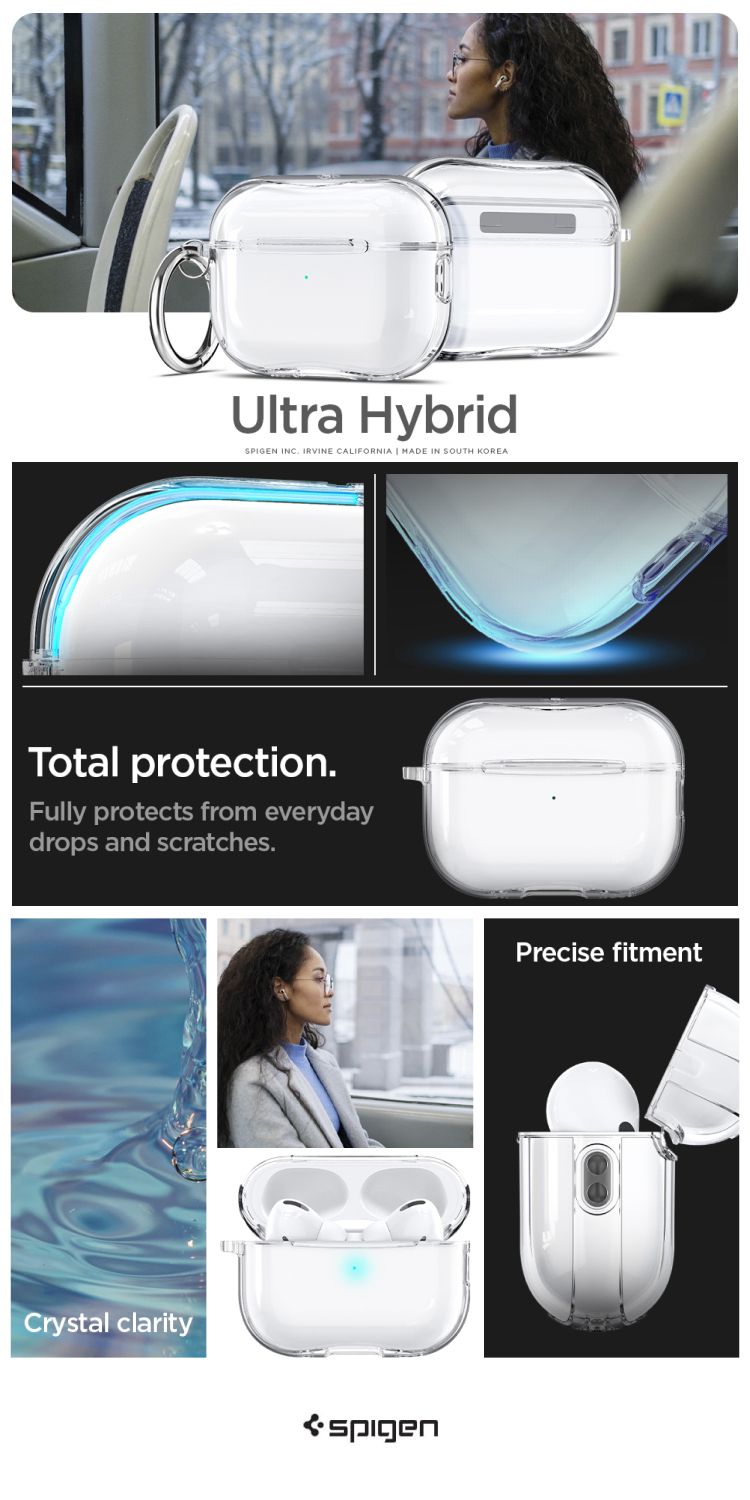 Case AirPods Pro 2 Spigen Ultra Hybrid merupakan Hybrid case yang terbuat dari bahan PC (Hardcase) yang bening dan TPU (Softcase) pada bagian bumper samping yang berfungsi sebagai anti-shock.