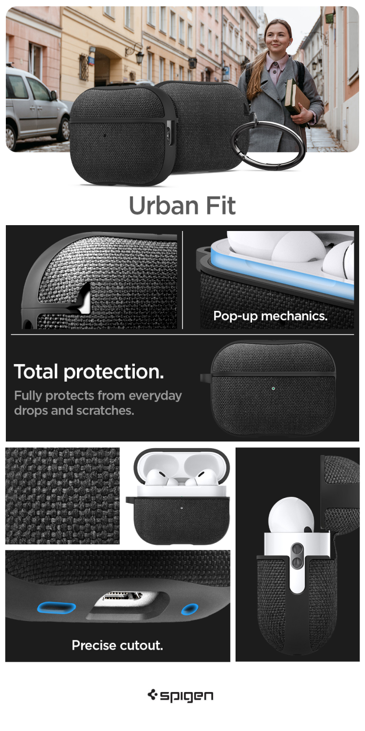 Case Airpods Pro 2 Spigen Urban Fit Hard Cover Fabric Hook Slim Casing