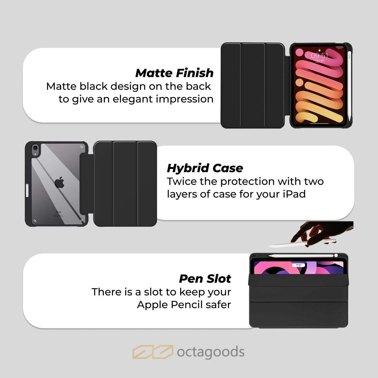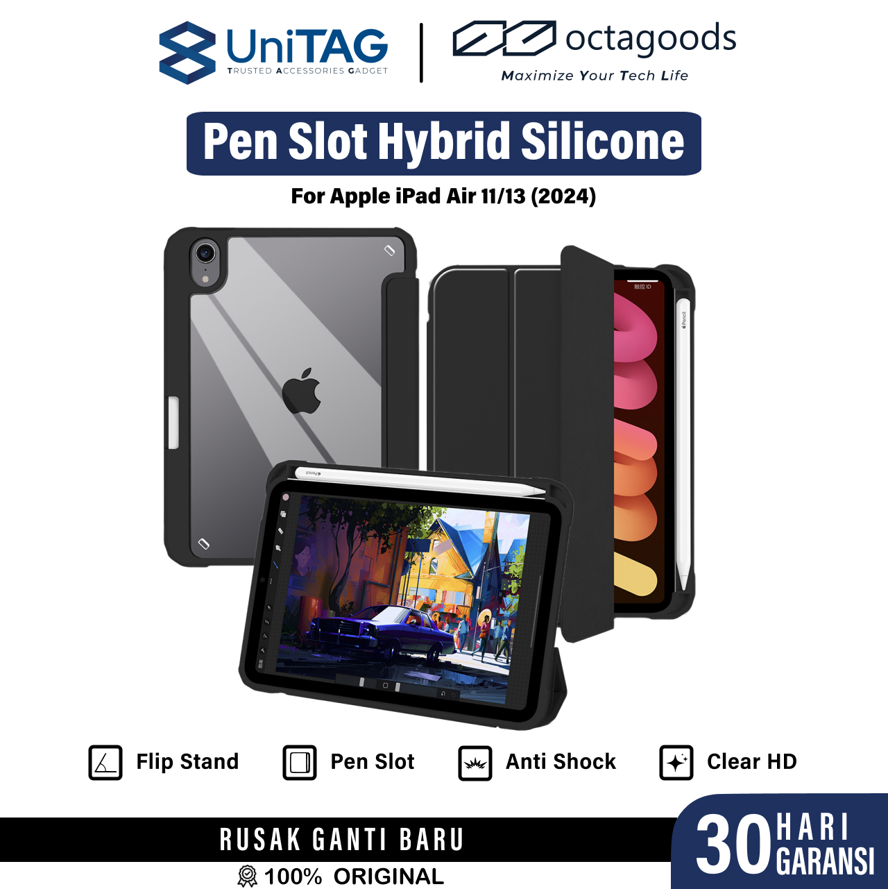 Case iPad Air 11 / 13 M2 2024 Octagoods Pen Slot Hybrid Silicone Flip Clear Matte Cover hadir dengan desain clear pada bagian belakang case untuk kamu yang suka berkreasi!!