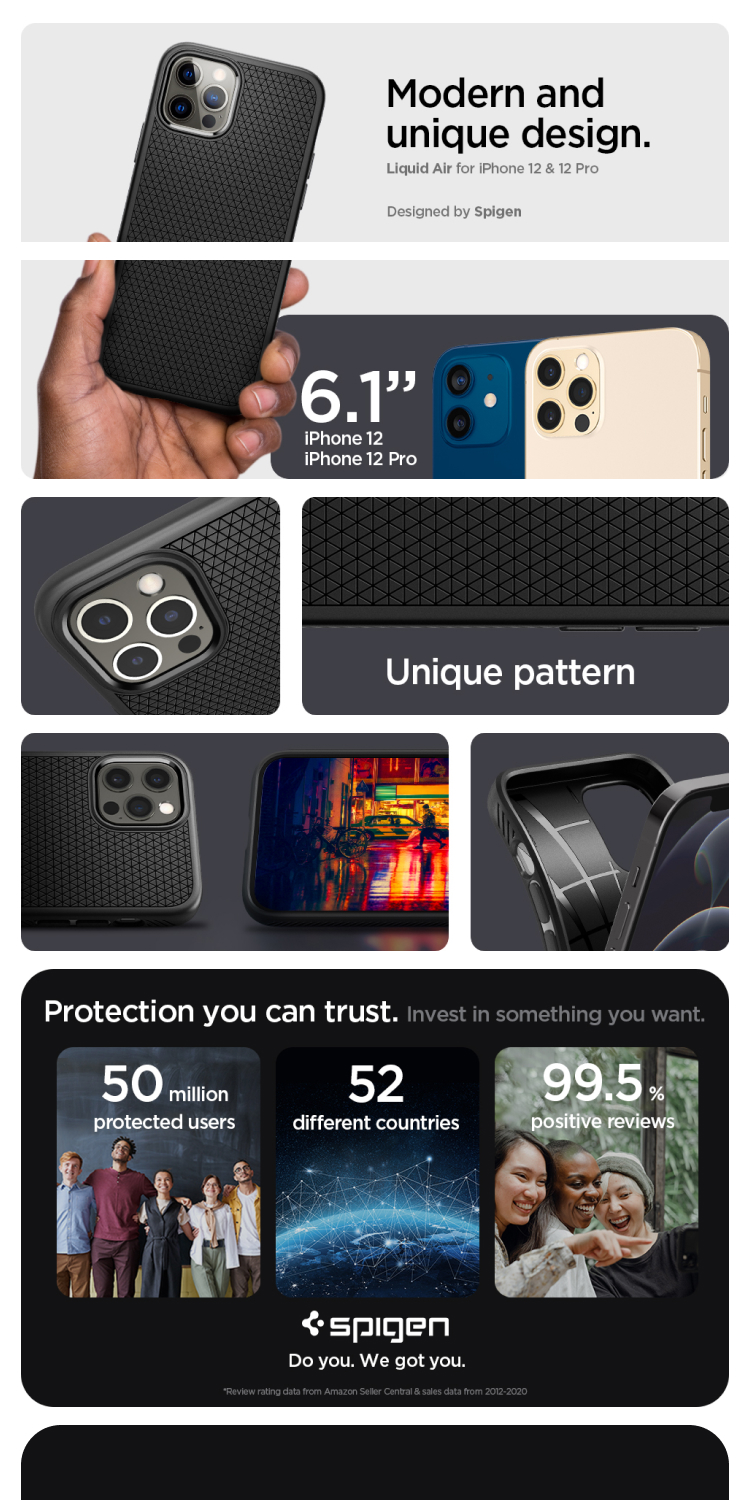 Case iPhone 12 Series Spigen Liquid Air merupakan full TPU Casing (Softcase) premium yang fleksibel dan tahan lama. Spigen Liquid Air dibekali dengan Air Cushion Technology dan pola geometric pada bagian belakang yang mewah.