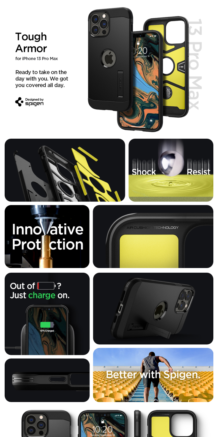 Case iPhone 13 Series Spigen Tough Armor Casing merupakan Hybrid case yang memiliki 3 layer dengan kombinasi bahan Impact Foam material pada bagian dalam, TPU (Softcase) dan PC (hardcase) pada bagian luar.