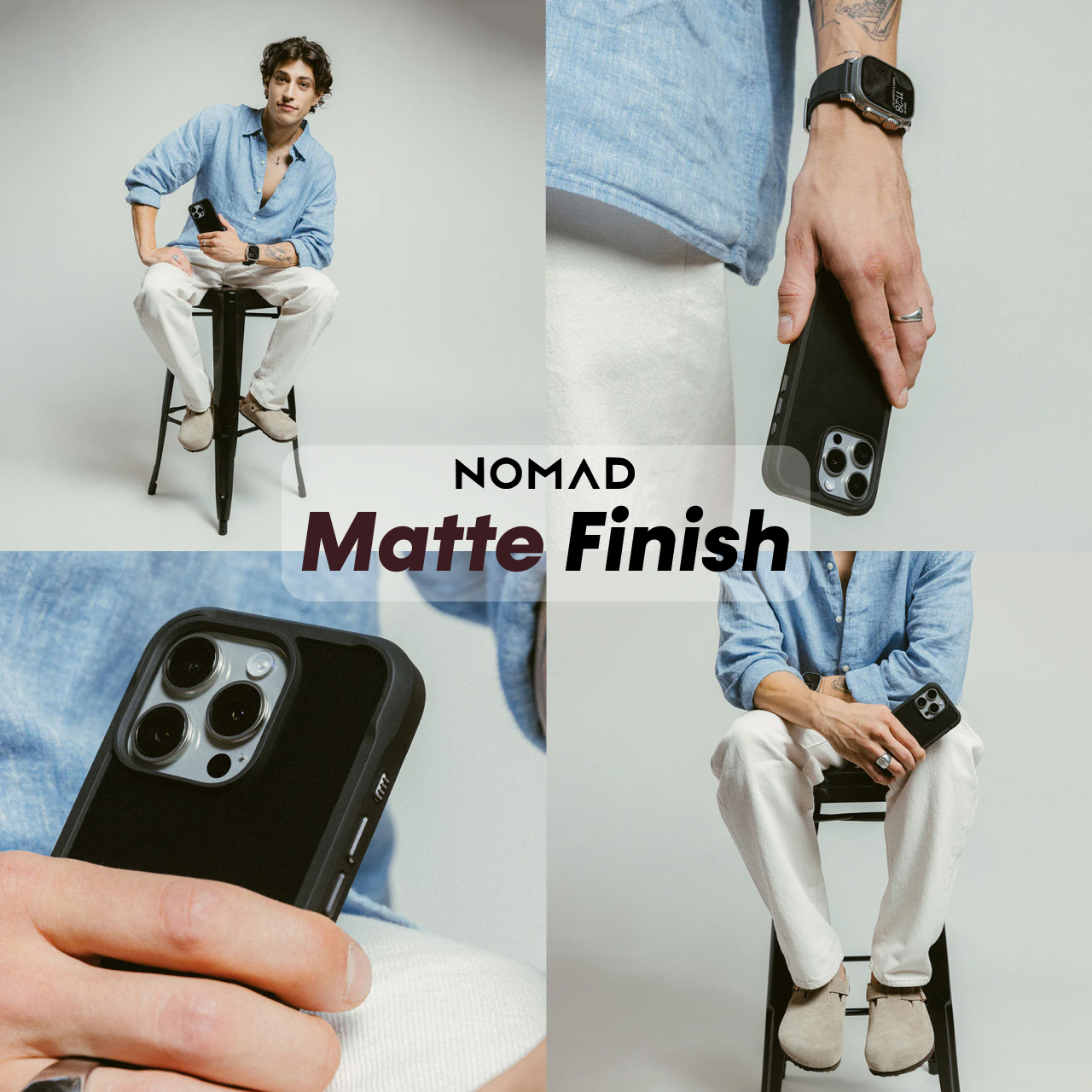 Case iPhone 16 Series Nomad Rugged Hybrid Shockproof Matte Cover merupakan case hybrid dengan finishing matte dan bumper shockproof tahan banting serta magnetic ring yang berguna memperkuat MagSafe iPhone kamu