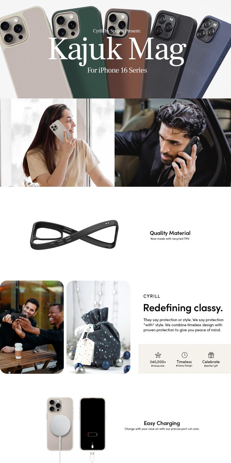 Case iPhone 16 Series Cyrill by Spigen Kajuk Mag MagSafe merupakan casing yang cocok untuk kamu yang mempunyai jiwa klasik dan elegan, memberikan perlindungan elegan dengan case berbahan leather halus dan MagSafe kuat di dalamnya. Gabungkan gaya dan fungsi untuk iPhone kamu!