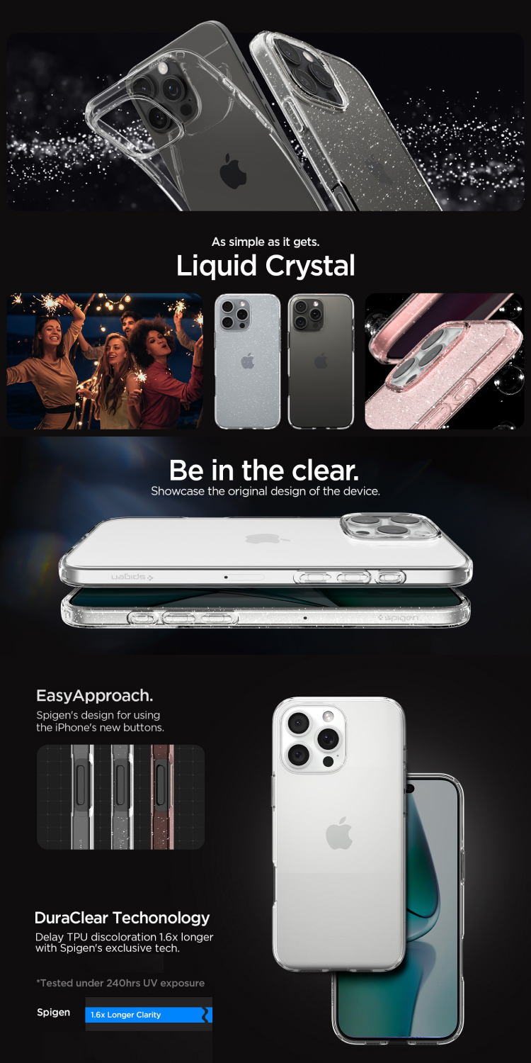 Case iPhone 16 Series Spigen Liquid Crystal MagSafe berbahan softcase premium yang fleksibel dan nyaman digenggam dibekali dengan anti shock khas spigen ditambah microdot pattern yang mampu melindungi device di segala sisi bikin iphone kamu keep clear, keep safe !