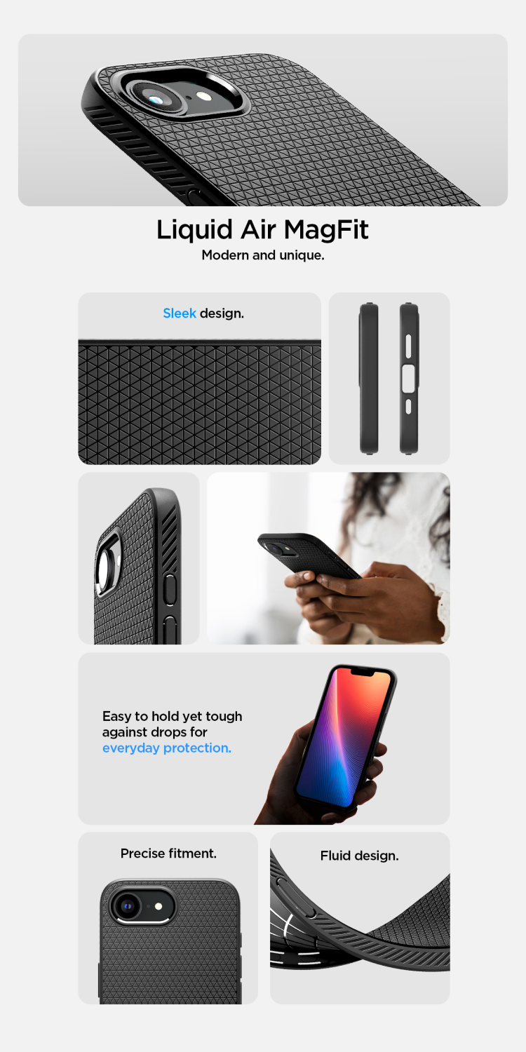 Case iPhone 16e 2025 Series Spigen Liquid Air berbahan Soft case premium yang fleksibel dan tahan lama dengan tekstur geometric pada bagian belakang ditambah teknologi spiderweb yang anti panas bikin iPhone kamu perfect grip, perfectly secure !