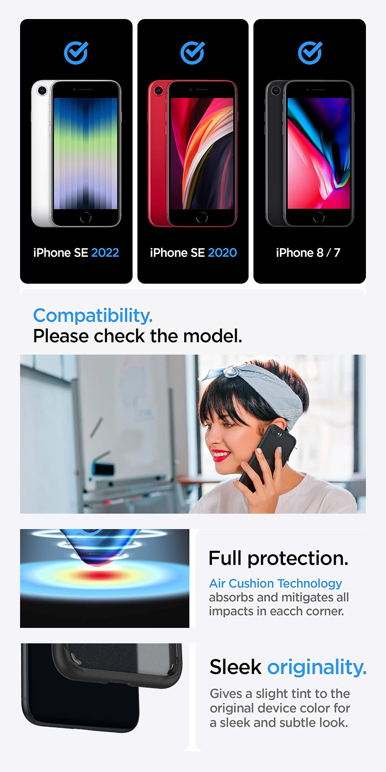 Case iPhone SE 2022 / 2020 iPhone 8 / 7 Spigen Ultra Hybrid 2 merupakan Hybrid case yang terbuat dari bahan PC (Hardcase) yang bening transparan pada bagian belakang case, dan TPU (Softcase) pada bagian bumper samping yang berfungsi sebagai anti-shock.