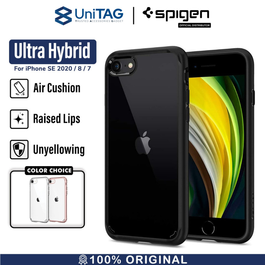 Case iPhone SE 2022 / 2020 iPhone 8 / 7 Spigen Ultra Hybrid 2 merupakan Hybrid case yang terbuat dari bahan PC (Hardcase) yang bening transparan pada bagian belakang case, dan TPU (Softcase) pada bagian bumper samping yang berfungsi sebagai anti-shock.