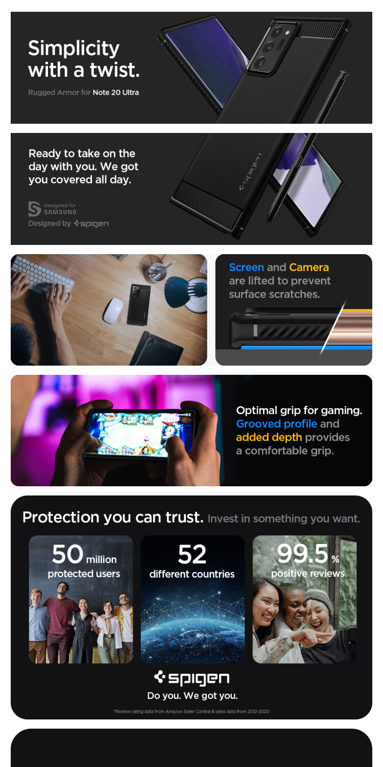 Case Samsung Galaxy Note 20 Ultra Spigen Rugged Armor Merupakan case yang terbuat dari bahan Full TPU (Softcase) yang premium sehingga nyaman digenggam serta mampu menyerap benturan. Hadirnya desain carbon fiber akan memberi kesan elegan pada smartphone.