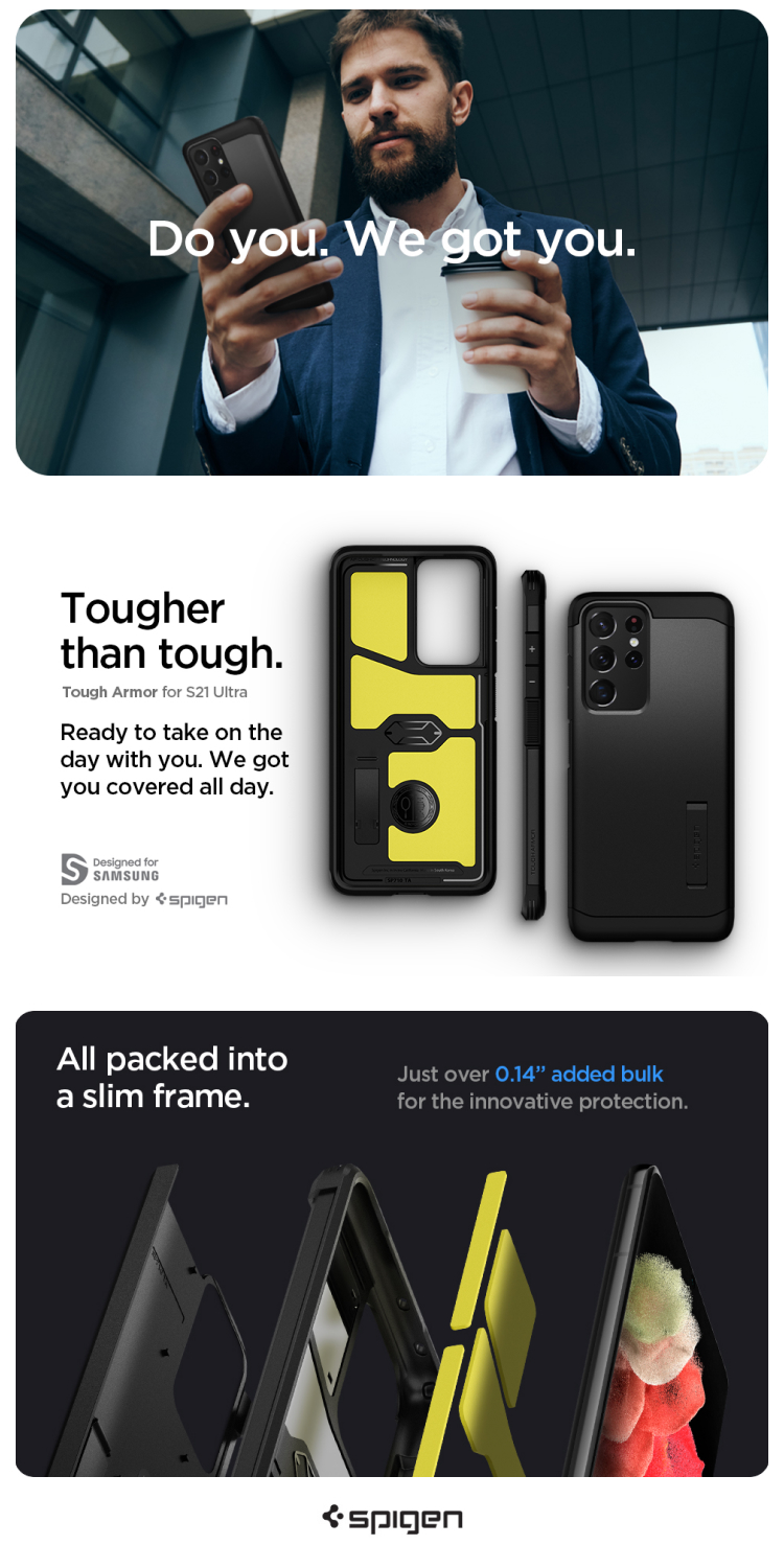 Case Samsung Galaxy S21 Series Spigen Tough Armor Casing merupakan Hybrid case yang memiliki 3 layer dengan kombinasi bahan Impact Foam material pada bagian dalam, TPU (Softcase) dan PC (hardcase) pada bagian luar.