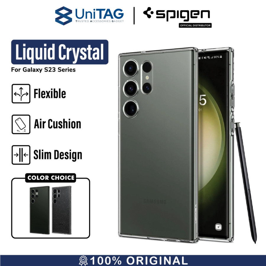 Case Samsung Galaxy S23 Series Spigen Liquid Crystal / Liquid Crystal Glitter Merupakan case yang terbuat dari bahan full TPU (Softcase) premium yang flexible, nyaman digenggam serta dapat meredam benturan.