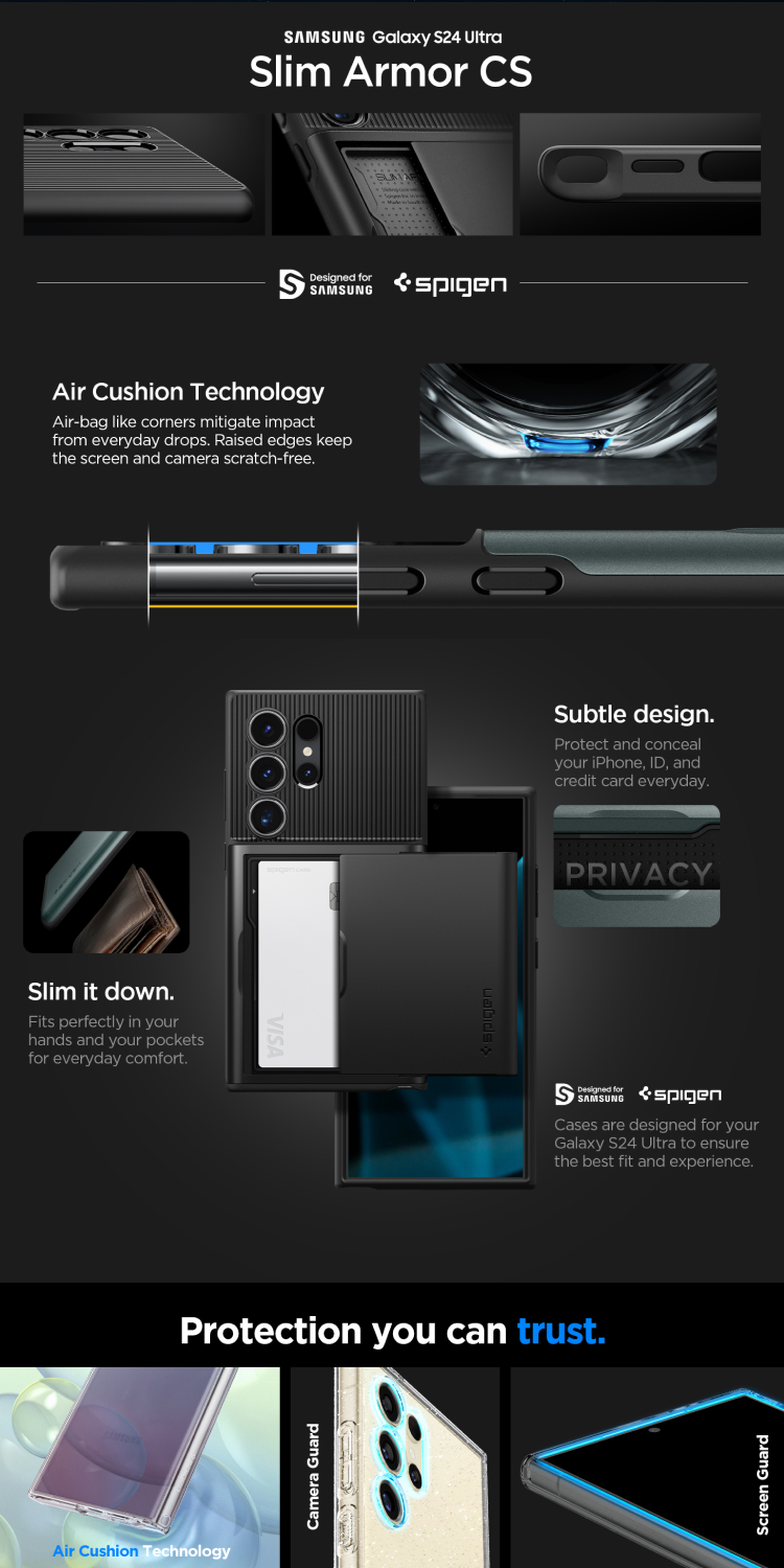 Pelindung HP for Samsung Galaxy S24 Series Spigen Slim Armor Card Slot Merupakan Hybrid Card Slot casing yang mampu menampung 2 kartu pada bagian body casing.
