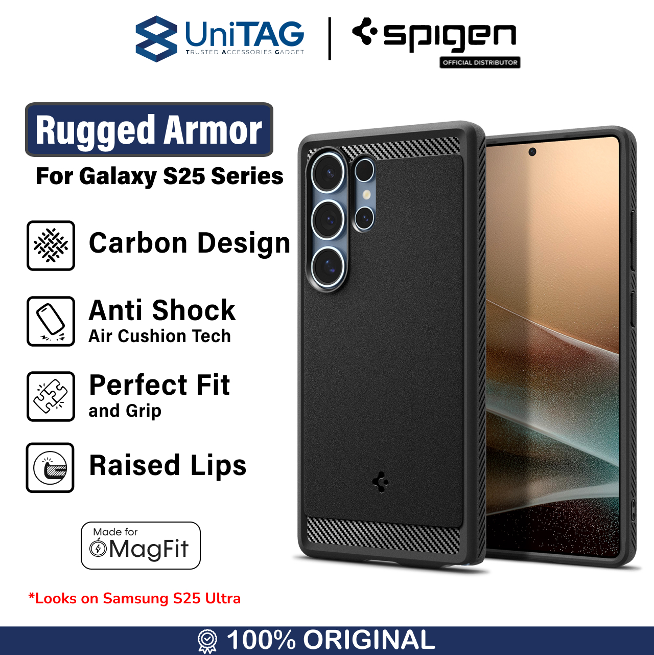 Case Samsung Galaxy S25 Ultra Plus Spigen Rugged Armor Magnetic MagSafe Anti Crack Carbon Casing