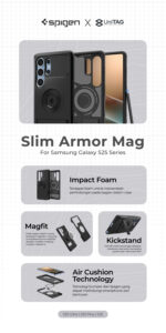 Case Samsung Galaxy S25 Series Spigen Slim Armor Magfit didesain untuk kamu yang ingin perlindungan yang kuat dan tentunya penggemar setia Spigen, casing hybrid yang punya magnet dan kickstand di belakangnya. Body ramping namun tetap kuat, slim yet tough protection !