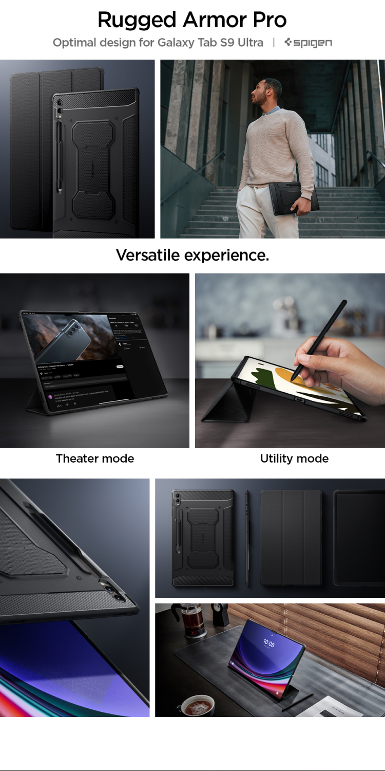 Case Samsung Galaxy Tab S9 Ultra Plus Spigen Rugged Armor Pro Casing merupakan Flip Cover casing yang terbuat dari campuran bahan PU (Synthetic Leather) dan TPU (Softcase).