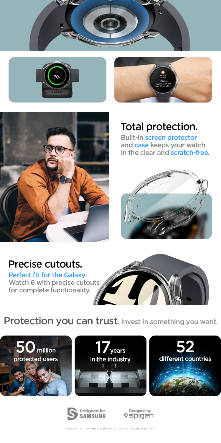 Case Samsung Galaxy Watch 6 44/40mm Spigen Ultra Hybrid Clear Cover Casing merupakan case yang terbuat dari bahan TPU (Softcase) pada bagian bumper untuk menjaga dari benturan sedangkan pada bagian layar terbuat dari bahan clear PC (Hardcase) yang akan melindungi layar Galaxy watch dari goresan.