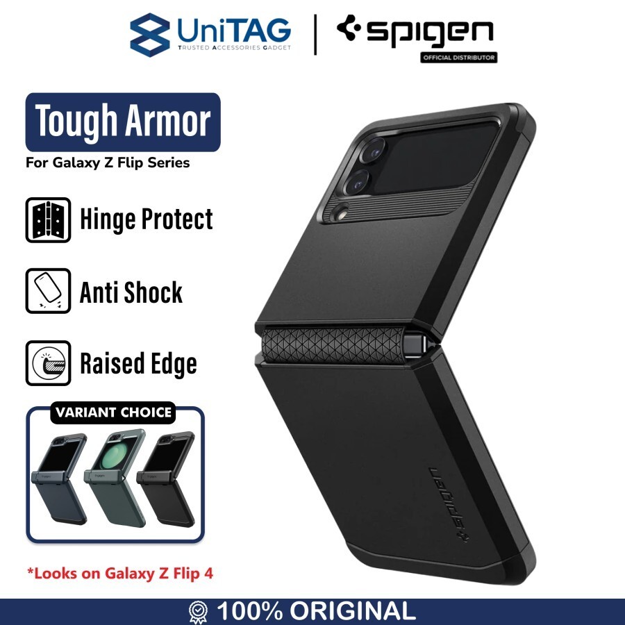 Case Samsung Galaxy Z Flip 3 Spigen Tough Armor Casing merupakan Hybrid case yang memiliki 2 layer dengan kombinasi bahan TPU (Softcase) pada bagian dalam dan PC (hardcase) pada bagian luar.