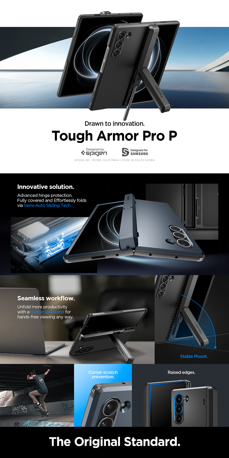 Case Samsung Galaxy Z Fold 6 Spigen Tough Armor P dengan teknologi Air Cushion yang dilengkapi dengan kickstand dan S Slot Pen ditambah dengan Hinge Protector bikin hp kamu More Compact, More Fun !