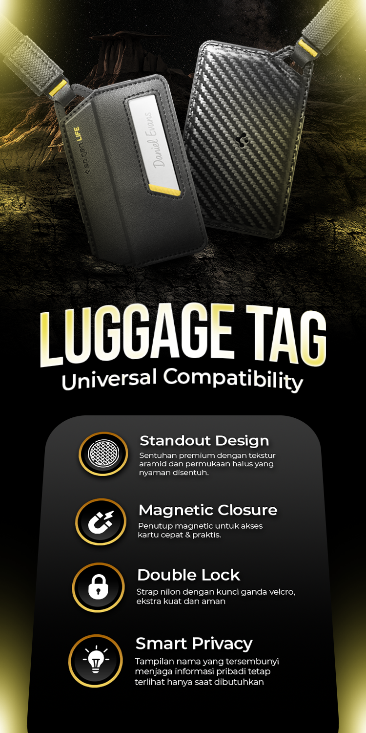 Label Tas Koper Spigen Luggage Tag Travel Baggage Gantungan Penanda Nama Magnetic Double Lock
