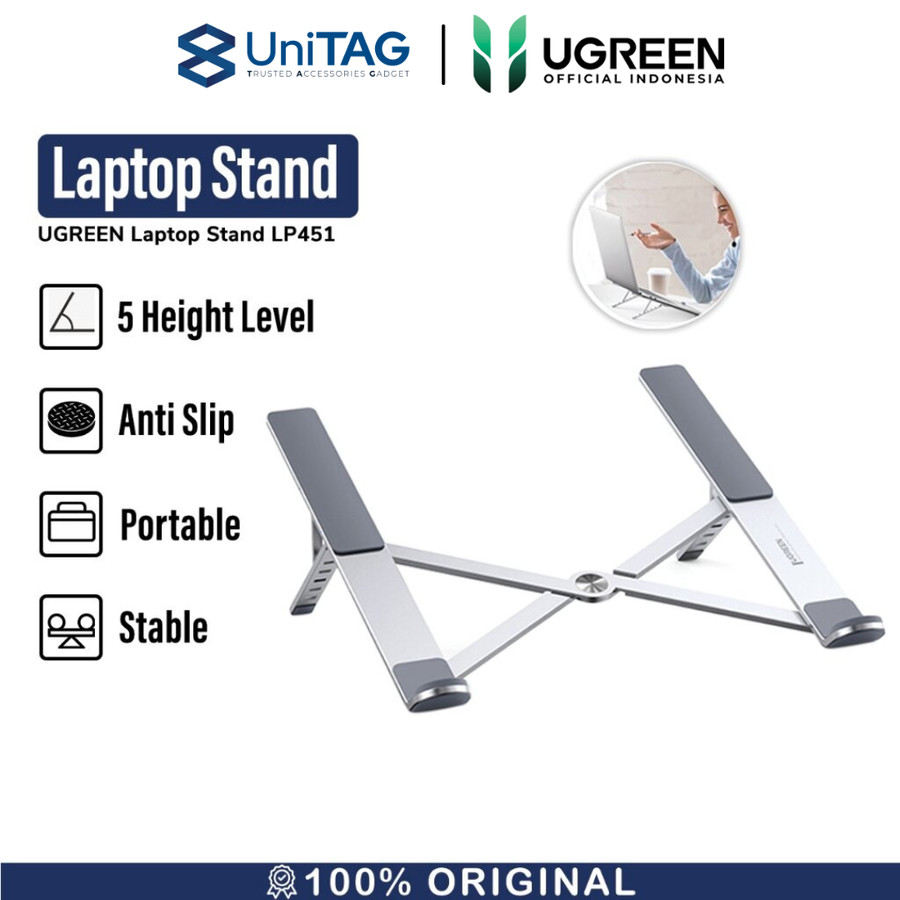 Foldable Laptop Stand UGREEN LP451 memiliki desain yang ringkas serta ringan sehingga mudah dibawa bepergian.