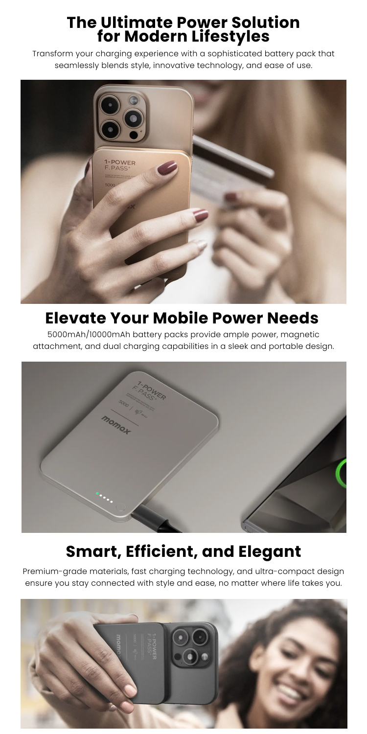 Momax Powerbank Magnetic Fast Charging For Samsung iPhone 1-Power F.Pass+ 5000mAh 10000mAh 20W-30W