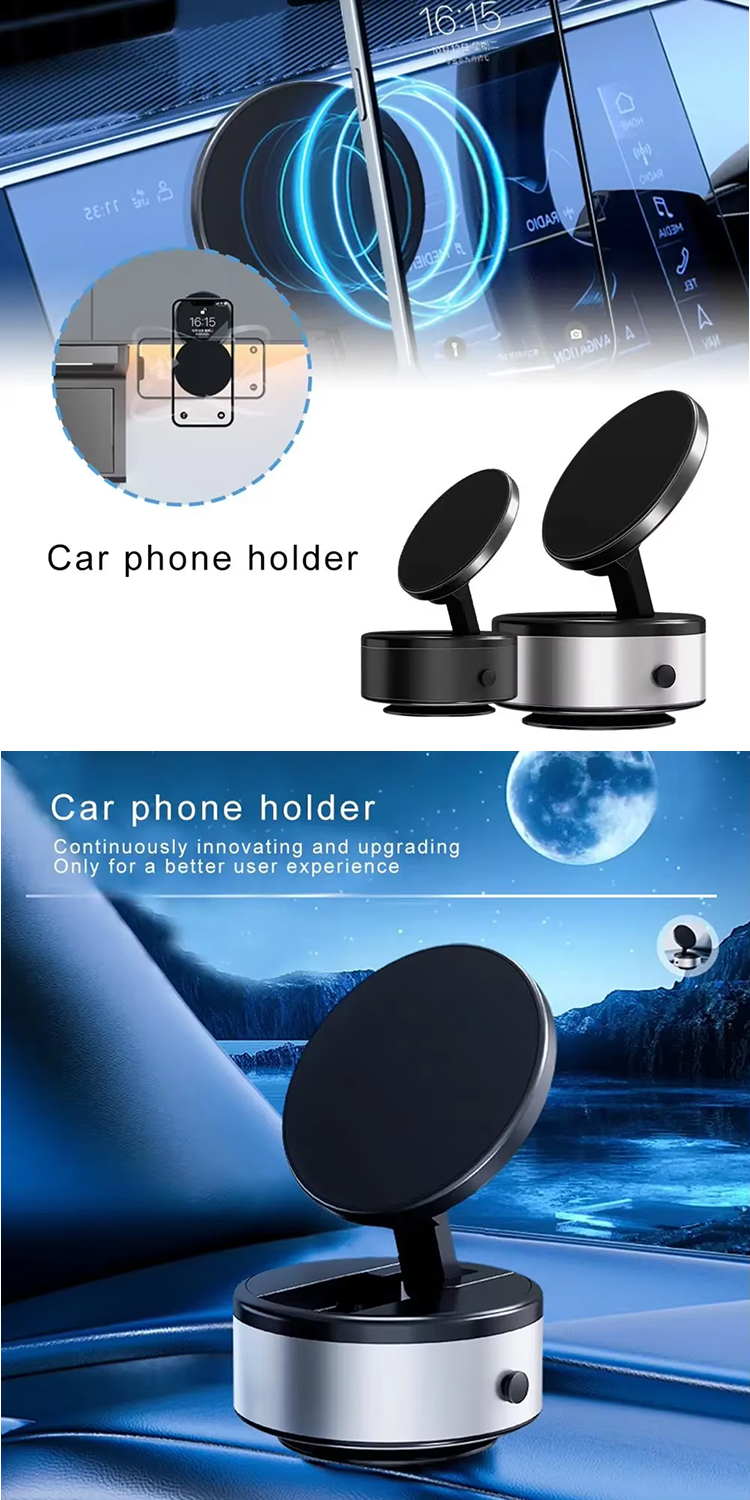 – Terdapat perekat vacuum elektrik pada bagian bawah holder yang dapat ditempelkan pada permukaan yang rata seperti dinding atau dashboard mobil