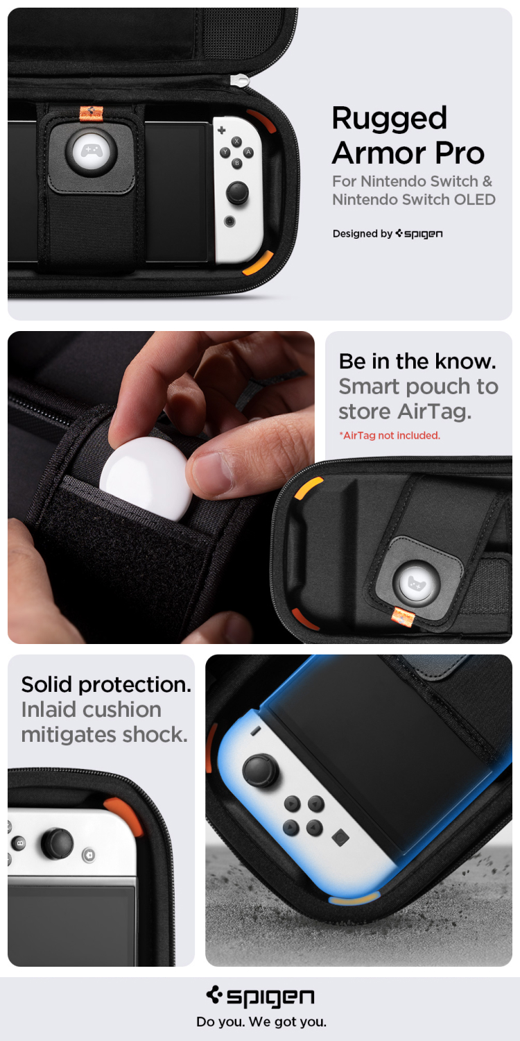 Case Nintendo Switch Game Card Pouch Spigen Rugged Armor Pro siap nemenin kamu bawa 56 game favorit ke mana aja! Dilengkapi hand strap, bahan EVA foam yang aman, dan desain carbon keren yang praktis, stylish, dan siap main kapan pun!