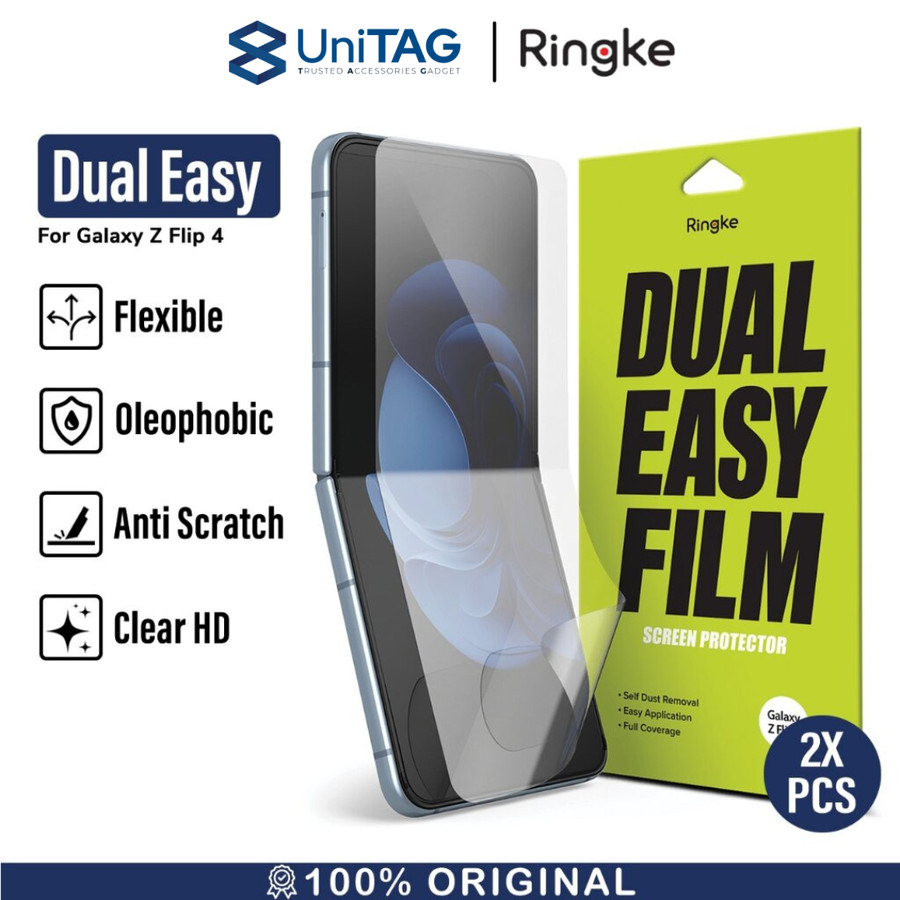 Screen Protector Samsung Galaxy Z Flip 4 5G Ringke Dual Easy Film merupakan pelindung layar yang terbuat dari bahan flexible film sehingga dapat menempel pada seluruh permukaan layar.