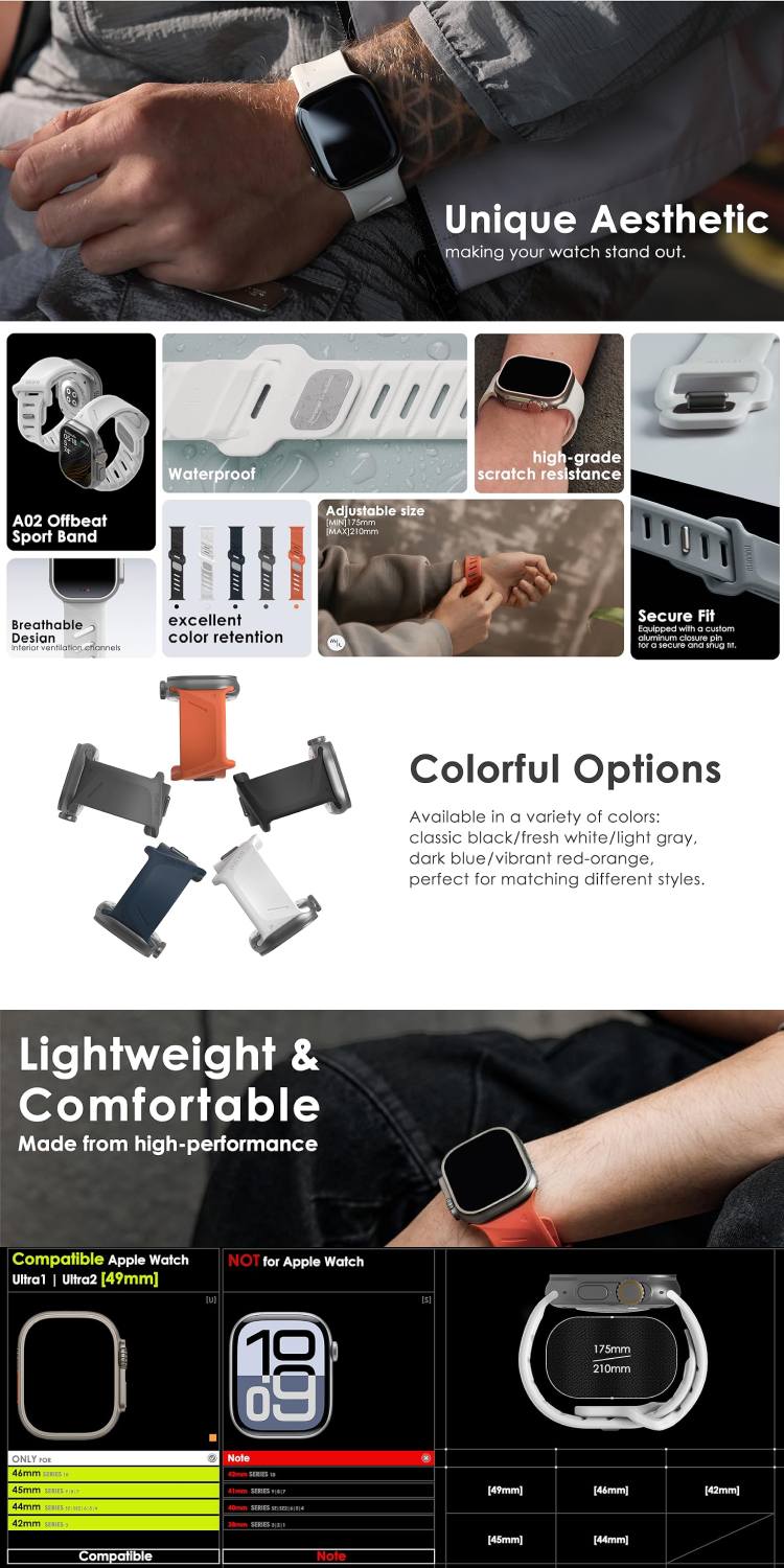 Strap Apple Watch Ultra 2 / 1 (49mm) 10 / 9 / 8 / 7 (45mm) / SE (2022 / 2020) / 6 / 5 / 4 (44mm) / 3 / 2 / 1 (42mm) Aulumu Offbeat Sport Rubber Band berbahan Polyester yang fleksibel dan sirkulasi udara terbaik dengan desain asimestris bikin jadi pusat perhatian, aktifitas tetep maksimal !
