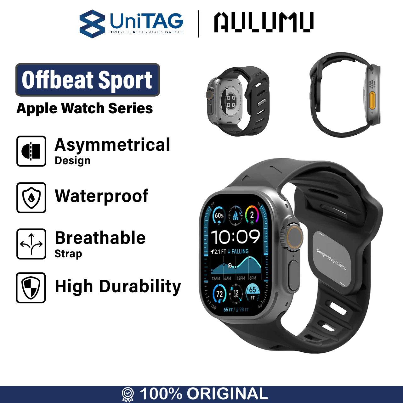 Strap Apple Watch Ultra 2 / 1 (49mm) 10 / 9 / 8 / 7 (45mm) / SE (2022 / 2020) / 6 / 5 / 4 (44mm) / 3 / 2 / 1 (42mm) Aulumu Offbeat Sport Rubber Band berbahan Polyester yang fleksibel dan sirkulasi udara terbaik dengan desain asimestris bikin jadi pusat perhatian, aktifitas tetep maksimal !