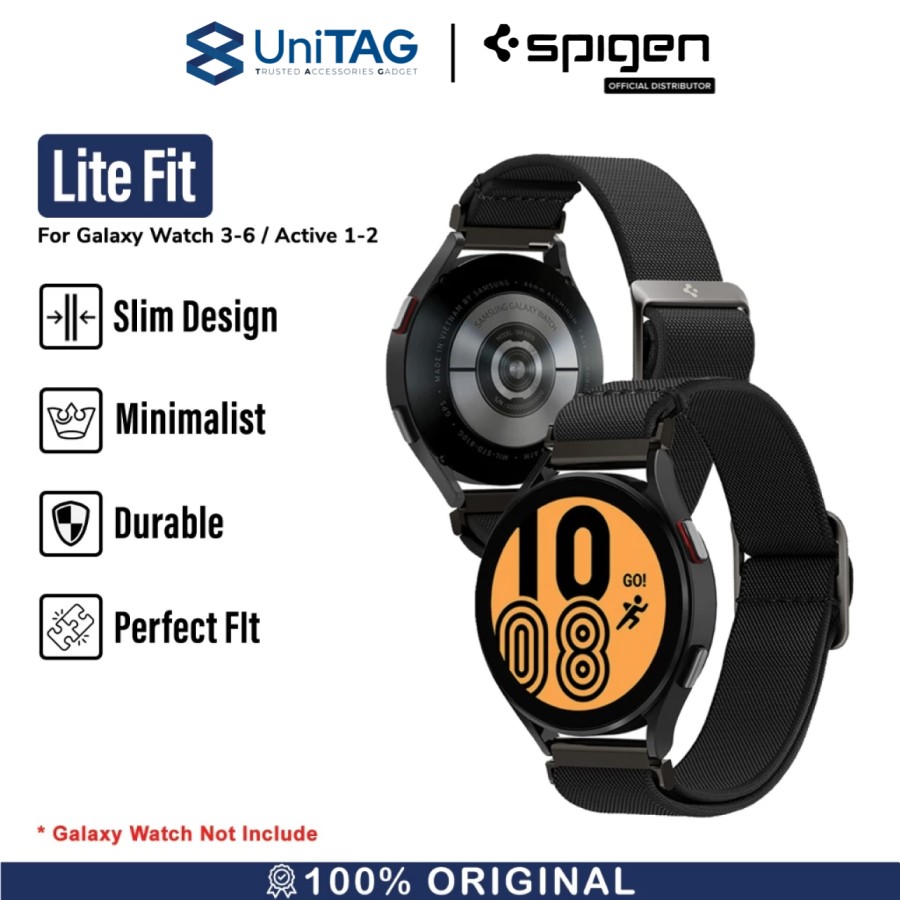 Strap Samsung Galaxy Watch 6 Series / 5 Series / 4 Series / 3 / Watch Active 2 / 1 Spigen Strap Band Lite Fit Terbuat dari bahan Fabric yang nyaman sedangkan bagian bucklenya terbuat dari bahan Zinc Alloy yang tahan goresan serta kokoh dan premium.