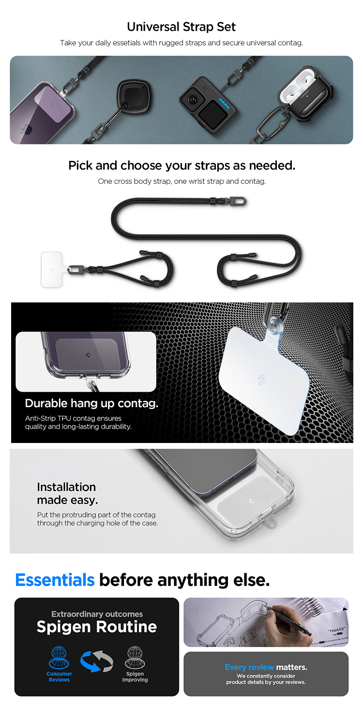 Strap Handphone Spigen Universal Cross Body / Wristband. Terbuat dari bahan fiber premium yang elastis dan nyaman digunakan.