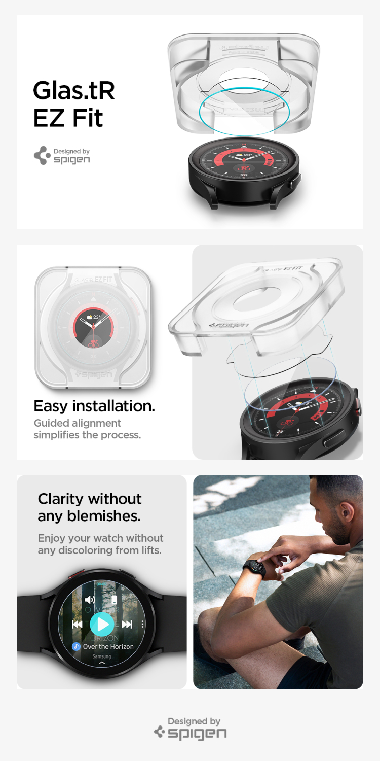 2x Spigen Glas tR EZ Fit for Samsung Galaxy Watch 5 Pro / 5 / 4 (45mm/44mm/40mm)