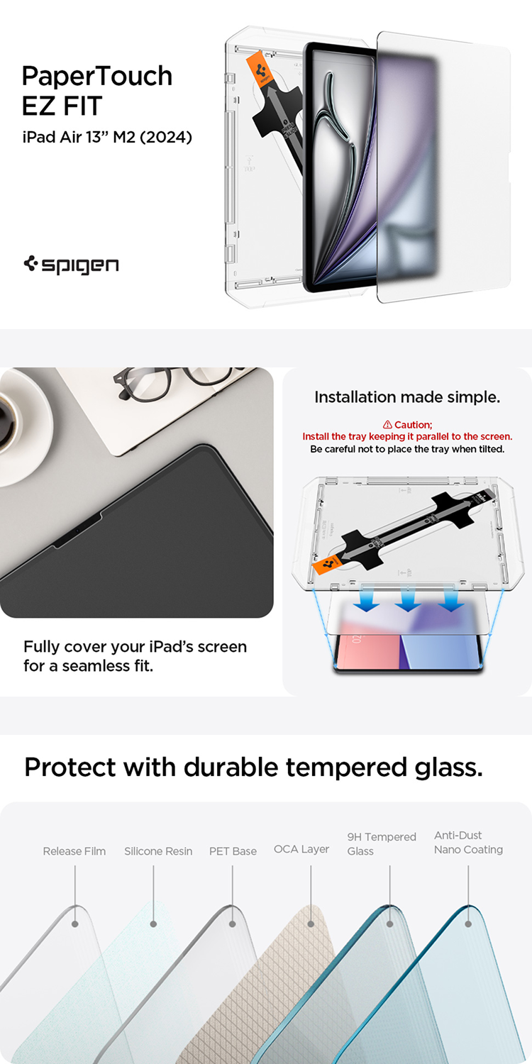 Tempered Glass iPad Air 13″ M2 2024 Spigen Glas tr Ez Fit Paperlike
