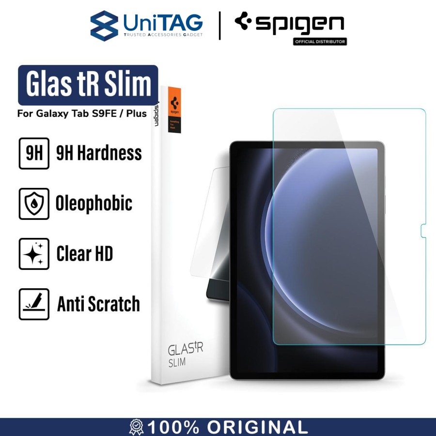 Tempered Glass Samsung Galaxy Tab S9 FE Series Spigen Glas.tR Slim merupakan pelindung layar yang terbuat dari kaca dengan kekerasan 9H Hardness serta memiliki lapisan Oleophobic yang akan melindungi layar. Spigen Glas.tR Slim melindungi layar tanpa mengurangi kualitas layar.